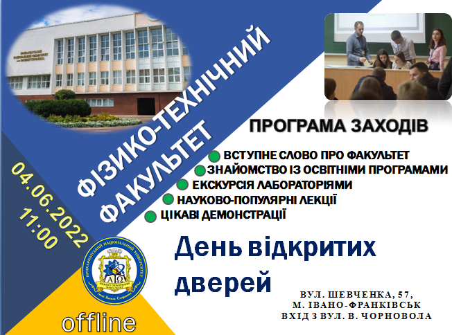 ОГОЛОШЕННЯ 6 жовтня 2022 року (четвер) о 16:00 відбудеться онлайн засідання розширеного семінару кафедр фізико-технічного факультету Прикарпатського національного університету імені Василя Стефаника за електронним посиланням https://meet.google.com/rwc-dyex-qic. ПОРЯДОК ДЕННИЙ 1. Наукова доповідь Соляник Людмили Олексіївни на тему «Моделювання йон-йонних взаємодій та багатоелектронного переносу заряду на Читати далі