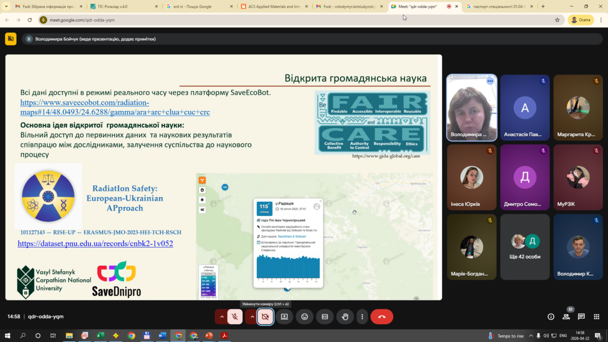 22 квітня 2026 року в рамках реалізації проєкту 101127143 – RISE-UP – ERASMUS-JMO-2023-HEI-TCH-RSCH за Модулем Жана Моне «Радіаційна безпека: європейсько-український підхід» (RadiatIonSafety: European-Ukrainian APproach) відбувся науково-просвітницький захід на тему «Радіація, довкілля і відповідальність: уроки Чорнобиля». Учасниками заходу стали студенти та викладачі фізико-технічного факультету Карпатського національного університету імені Василя Стефаника.